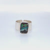 See the wonder of nature's energy that built these intriguing layers of flash and color. This beautiful Queensland Boulder opal ring does it oh so well. These unique gemstones embody a deep sense of serenity, especially within the soul. Their shifting colors mirror the complexity of human emotions, capturing both chaos and harmony in a single, mesmerizing display. It is set in durable sterling silver to make this great bonding of opal and silver last for generations.